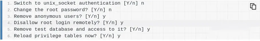 ✅ Setting a root password (MariaDB 10.4+ uses Unix socket authentication, so this may be optional).